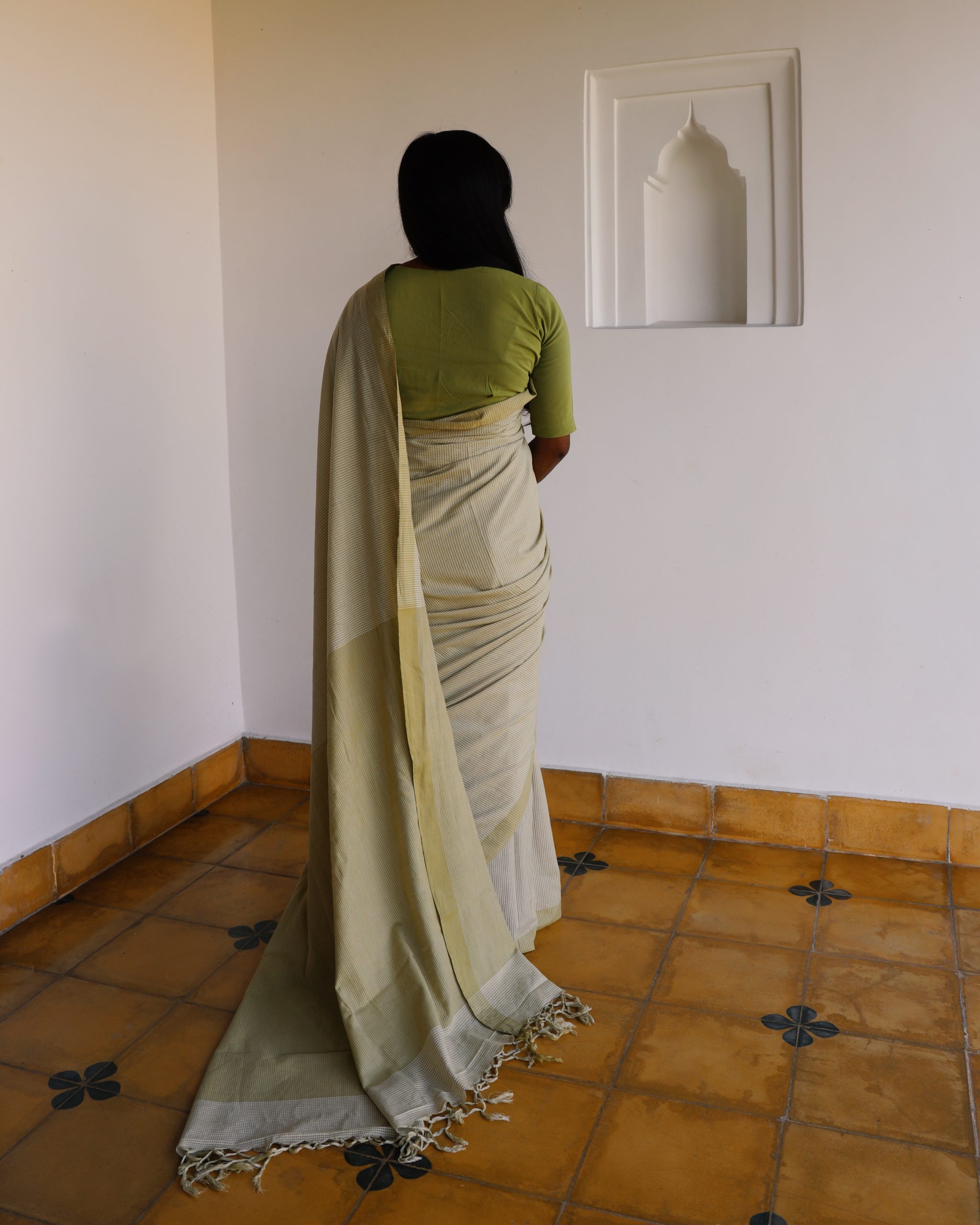 Be the first to review “Natural Dye Micro check Saree in Eclipta”